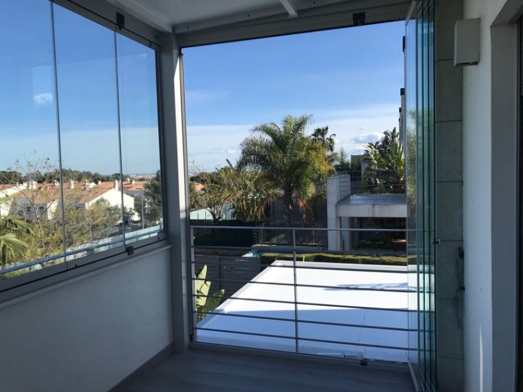 Las cortinas de cristal son la opción más elegante y ligera para cerrar espacios sin perder la sensación de amplitud ni las vistas al exterior. No tienen perfiles verticales visibles, lo que aporta una estética moderna y minimalista.