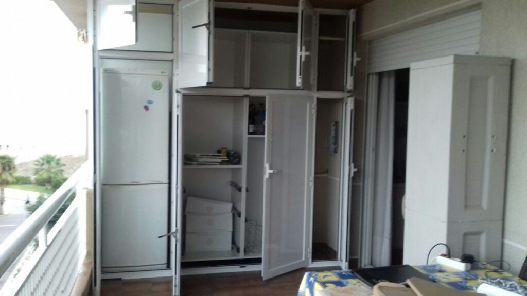 Estructuras de aluminio o PVC resistentes a la humedad, ideales para exteriores o terrazas. Puertas correderas o abatibles con cerradura de seguridad.