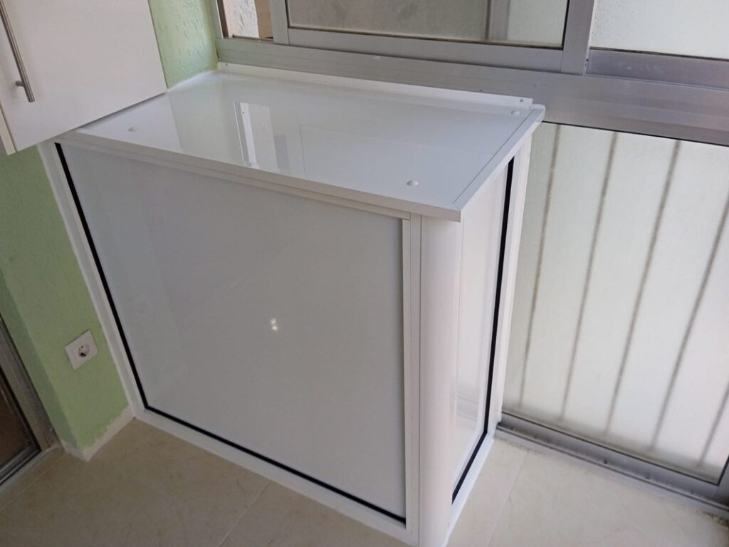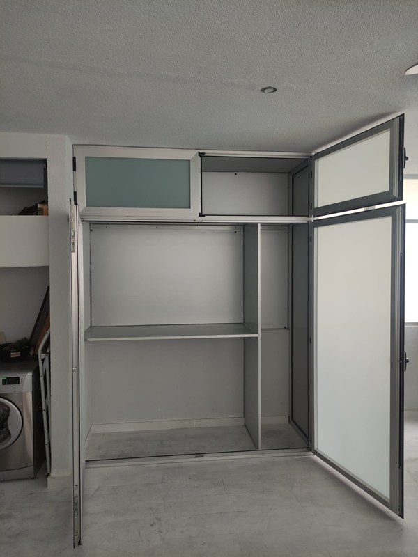 Estructuras de aluminio o PVC resistentes a la humedad, ideales para exteriores o terrazas. Puertas correderas o abatibles con cerradura de seguridad.
